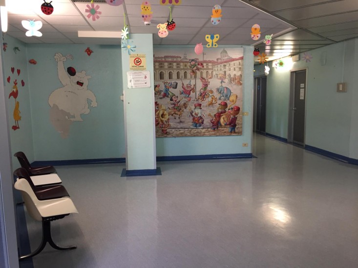 Il progetto prevede il recupero stilistico del reparto con la pulitura delle pareti, la nuova tinteggiatura e le decorazioni a tema il mare, l’arcobaleno e il bosco. Gli interventi riguardano la sistemazione di tutto il reparto (n. 3 piani, le stanze di degenza oltre il vano scale) e interventi sugli arredi e nei bagni.